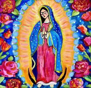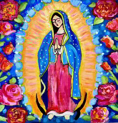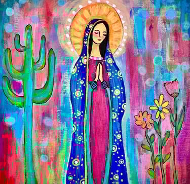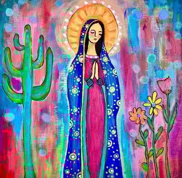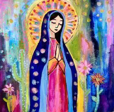 SOLD/CUSTOM ORDER. Title "Virgin Of Guadalupe" 8"x8"x.75 Acrylic paint on wood